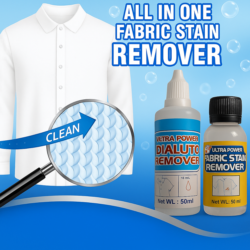 Say goodbye to the hassle with our advanced All-in-One Fabric Stain Remover, a powerful solution to keep your clothes looking brand new.